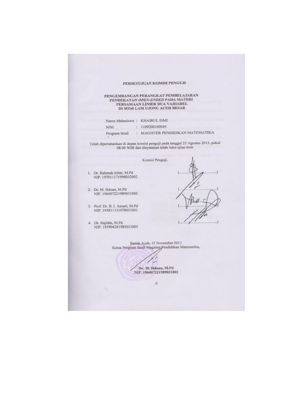 khairul ismi, PENGEMBANGAN PERANGKAT PEMBELAJARAN PENDEKATAN OPEN-ENDED PADA MATERI PERSAMAAN LINIER DUA VARIABEL DI MTSS LAM UJONG ACEH BESARRNPENGEMBANGAN PERANGKAT PEMBELAJARAN PENDEKATAN OPEN-ENDED PADA MATERI RNPERSAMAAN LINIER DUA VARIABEL RNDI MTSS LAM UJONG ACEH BESAR. Banda Aceh Fakultas Pasca Sarjana,2013