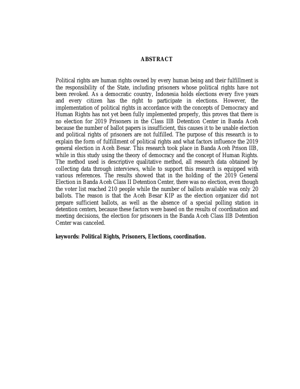 IKMAL FATRA MAULA, HAK POLITIK NARAPIDANA RUMAH TAHANAN NEGARA KELAS IIB BANDA ACEH PADA PEMILU TAHUN 2019. Banda Aceh Universitas Syiah Kuala,2020