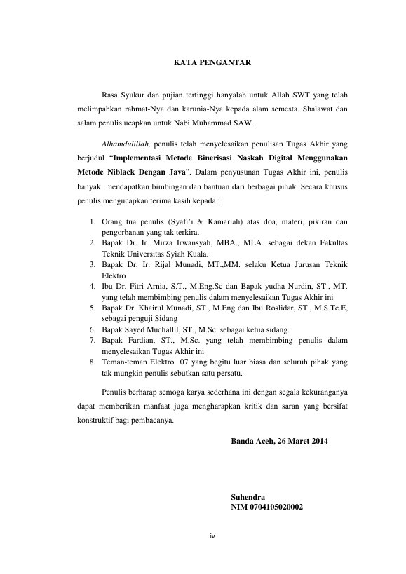 Suhendra, IMPLEMENTASI METODE BINERISASI NASKAH DIGITAL MENGGUNAKAN METODE NIBLACK DENGAN JAVA. Banda Aceh Fakultas Teknik,2014