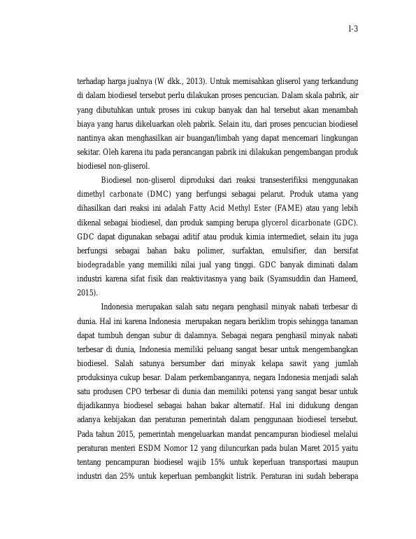 Dinda Valensya, PRARANCANGAN PABRIK BIODIESEL NON-GLISEROL DENGAN KAPASITAS PRODUKSI 100.000 TON/TAHUN. Banda Aceh Universitas Syiah Kuala,2020