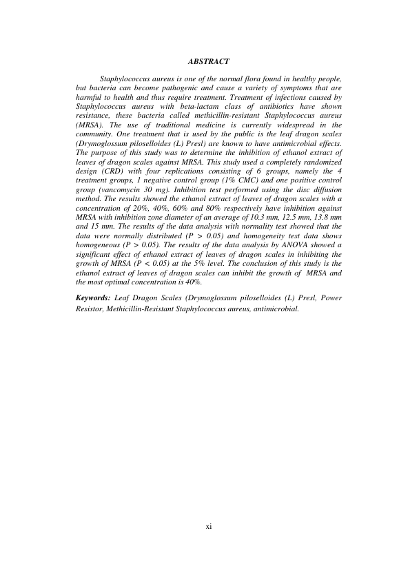 Baca Juga : PENGARUH EKSTRAK ETANOL DAUN SAMBILOTO (ANDROGRAPHIS PANICULATA) DALAM MENGHAMBAT PERTUMBUHAN METHICILLIN RESISTANT STAPHYLOCOCCUS AUREUS ISOLAT DARI INFEKSI NASOKOMIAL (DIANA AYUNI, 2015)