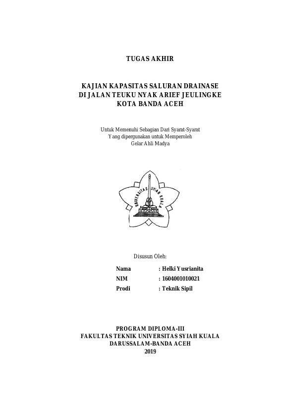 Baca Juga : STUDI KINERJA SALURAN DRAINASE KAMPUS UNSYIAH KOPELMA DARUSSALAM BANDA ACEH (Muhammad Iqbal, 2019)
