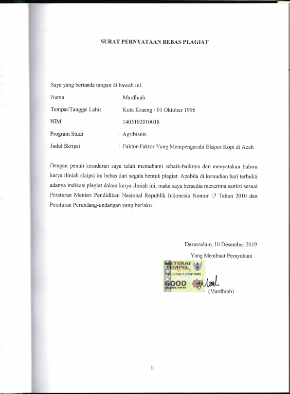 Baca Juga : ANALISIS EKSPOR KOPI ACEH KE AMERIKA SERIKAT (T. Farizi Mundzir, 2013)