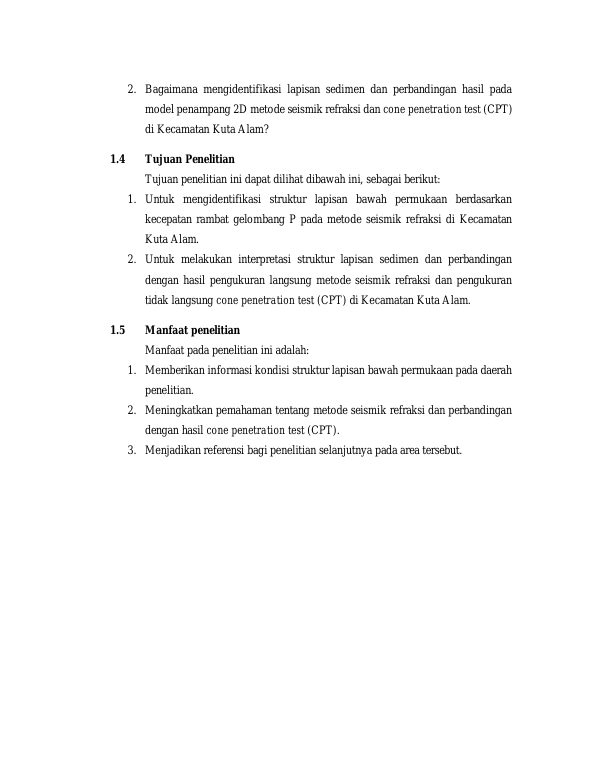 Baca Juga : IDENTIFIKASI STRUKTUR BAWAH PERMUKAAN PADA AREA PEMBANGUNAN JEMBATAN KRUENG KALENG, SABET, ACEH JAYA MENGGUNAKAN METODE SEISMIK REFRAKSI DAN METODE GEOLISTRIK (Intan Maullida, 2016)