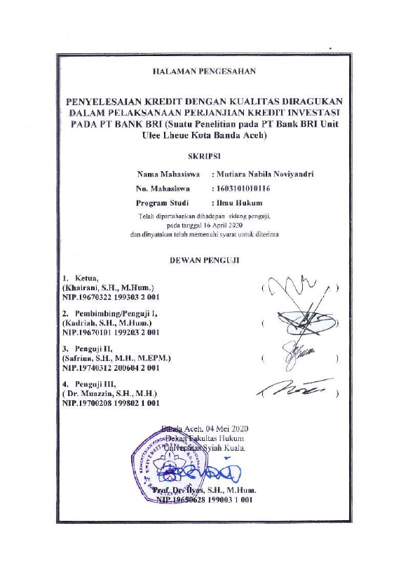 Baca Juga : PENYELESAIAN KREDIT MACET PADA PERJANJIAN KREDIT MODAL KERJA DI PT BANK YUDHA BHAKTI, TBK CABANG MEDAN (Reza Pahlevi, 2015)