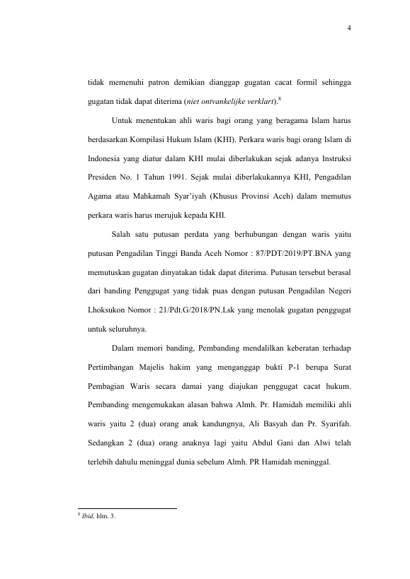 Baca Juga : STUDI KASUS TERHADAP PUTUSAN PENGADILAN TINGGI BANDA ACEH NOMOR 87/PDT/2019/PT.BNA TENTANG GUGATAN PERBUATAN MELAWAN HUKUM YANG DINYATAKAN TIDAK DAPAT DITERIMA (Adia Nanda Putra, 2020)