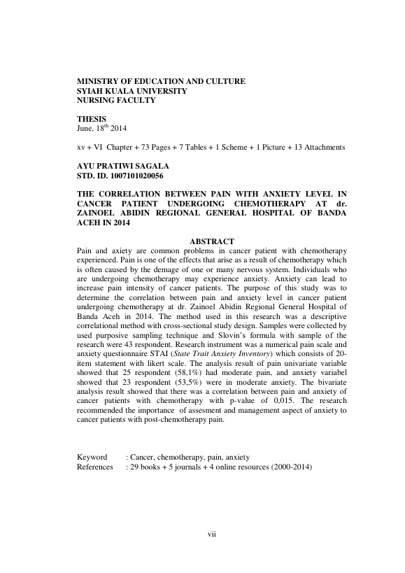 Baca Juga : TINGKAT KECEMASAN PADA PASIEN KANKER TELINGA, HIDUNG, DAN TENGGOROK, KEPALA, LEHER (THT-KL) YANG MENJALANI KEMOTERAPI DI BLUD RSUDZA (Sutrisno Habibi Lbs, 2017)