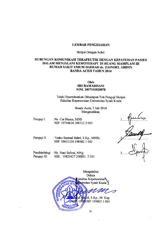 Baca Juga : HUBUNGAN DUKUNGAN PASANGAN DENGAN KEPATUHAN RNMENJALANI KEMOTERAPI PADA PASIEN KANKER RNDI RUANG MAMPLAM III RUMAH SAKIT UMUM RNDAERAH DR. ZAINOEL ABIDIN BANDA ACEH (Nila Agustina, 2015)