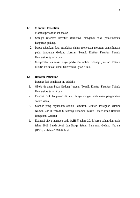 Baca Juga : IDENTIFIKASI KERUSAKAN DAN ESTIMASI BIAYA PERAWATAN GEDUNG JURUSAN TEKNIK MESIN FAKULTAS TEKNIK UNIVERSITAS SYIAH KUALA (PUTRI SARAH RASEUKY, 2020)