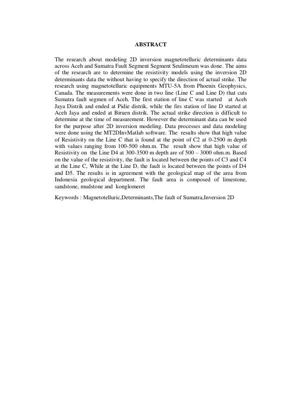 INVERSI 2D DATA DETERMINAN MAGNETOTELURIK (Studi Kasus pada Lintasan Sesar Sumatera, Segmen Aceh) INVERSI 2D DATA DETERMINAN MAGNETOTELURIK (Studi Kasus pada Lintasan Sesar Sumatera, Segmen Aceh) INVERSI 2D DATA DETERMINAN MAGNETOTELURIK (Studi Kasus pada Lintasan Sesar Sumatera, Segmen Aceh) INVERSI 2D DATA DETERMINAN MAGNETOTELURIK (Studi Kasus pada Lintasan Sesar Sumatera, Segmen Aceh) INVERSI 2D DATA DETERMINAN MAGNETOTELURIK (Studi Kasus pada Lintasan Sesar Sumatera, Segmen Aceh) Inversi 2D Data Determinan Magnetotelurik (Studi Kasus pada Lintasan Sesar Sumatera Segmen Aceh). Banda Aceh Fakultas Matematika dan Ilmu Pengetahua,2013