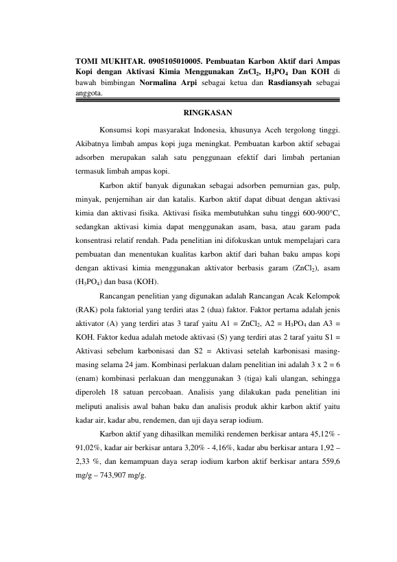 Baca Juga : PENGARUH TEMPERATUR KARBONASI DAN KONSENTRASI ZNCL2 TERHADAP KUALITAS KARBON AKTIF DARI AMPAS KOPI (Zikri Mustaqim, 2015)