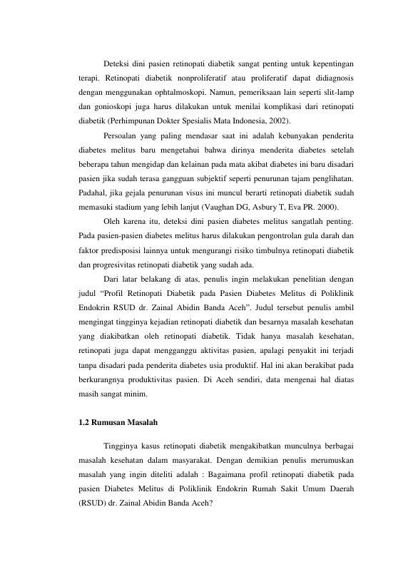 Uzi Mardha Phoenna, PROFIL RETINOPATI DIABETIK PADA PASIEN DIABETES MELITUS DI POLIKLINIK ENDOKRIN RSUD ZAINAL ABIDIN BANDA ACEH. Banda Aceh Fakultas Kedokteran,2012