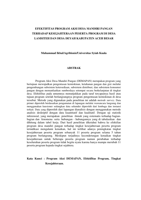 Baca Juga : TINGKAT KEBERHASILAN PROGRAM KAWASAN MANDIRI PANGAN DI KECAMATAN LHOONG KABUPATEN ACEH BESAR (Rauzatul Iwa, 2020)