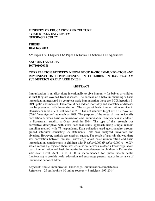 Baca Juga : HUBUNGAN ANTARA TINGKAT PENDIDIKAN, PENGETAHUAN IBU DAN JUMLAH ANAK DENGAN STATUS IMUNISASI DASAR DI PUSKESMAS JAYA BARU BANDA ACEH (Annisa Soraya Putri, 2014)