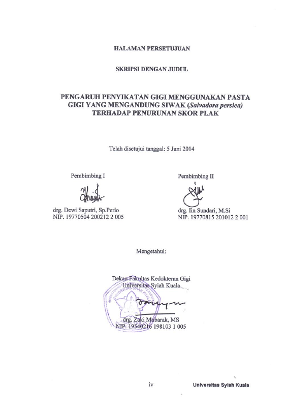 Baca Juga : PERBANDINGAN EFEKTIFITAS PENGGUNAAN PASTA GIGI HERBAL DENGAN PASTA GIGI NON HERBAL TERHADAP PENURUNAN SKOR PLAK (STUDI PADA SISWA-SISWI KELAS VII MTSN DI PONDOK PESANTREN ULUMUL QUR’AN BANDA ACEH) (mutia citra, 2014)