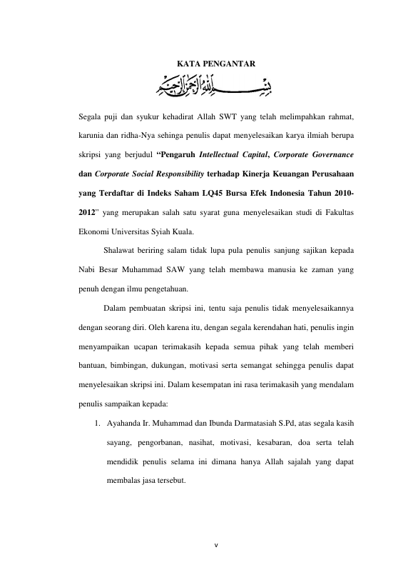 Ulfa Ikhwazahmi, PENGARUH INTELLECTUAL CAPITAL, CORPORATERNGOVERNANCE, DAN CORPORATE SOCIAL RESPONSIBILITYRNTERHADAP KINERJA KEUANGAN PERUSAHAAN YANGRNTERDAFTAR DI INDEKS LQ45 BURSA EFEK INDONESIARNTAHUN 2010-2012. Banda Aceh Fakultas Ekonomi,2014