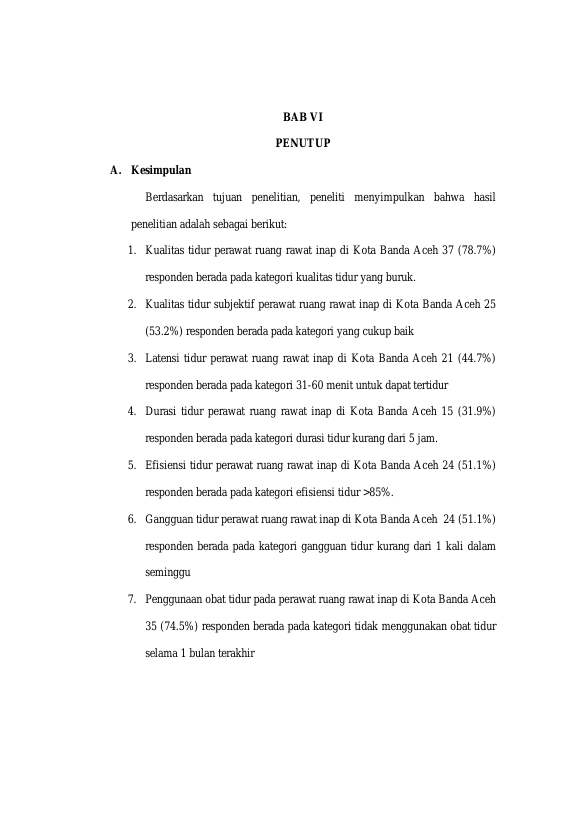 Baca Juga : GAMBARAN KUALITAS TIDUR PERAWAT RUANG RAWAT INAP DI KOTA BANDA ACEH (MU`AMMAR DHIAUL HAQQ, 2020)