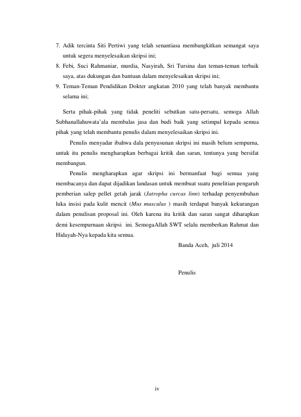 Baca Juga : PENGARUH PEMBERIAN SALEP PELLET GETAH JARAK PAGAR (JATROPHA CURCAS L.) TERHADAPRNPENYEMBUHAN LUKA INSISI PADA RNKULIT MENCIT (MUS MUSCULUS) (Siti Iga Purwasih, 2014)
