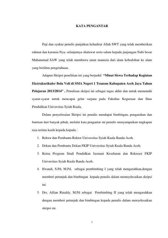 Suardi, MINAT SISWA TERHADAP KEGIATAN EKSTRAKURIKULER BOLA VOLI DI SEKOLAH SMA NEGERI 1 TEUNOM KABUPATEN ACEH JAYA TAHUN PELAJARAN 2013/2014. Banda Aceh Fakultas Keguruan dan Ilmu Pendidikan,2014