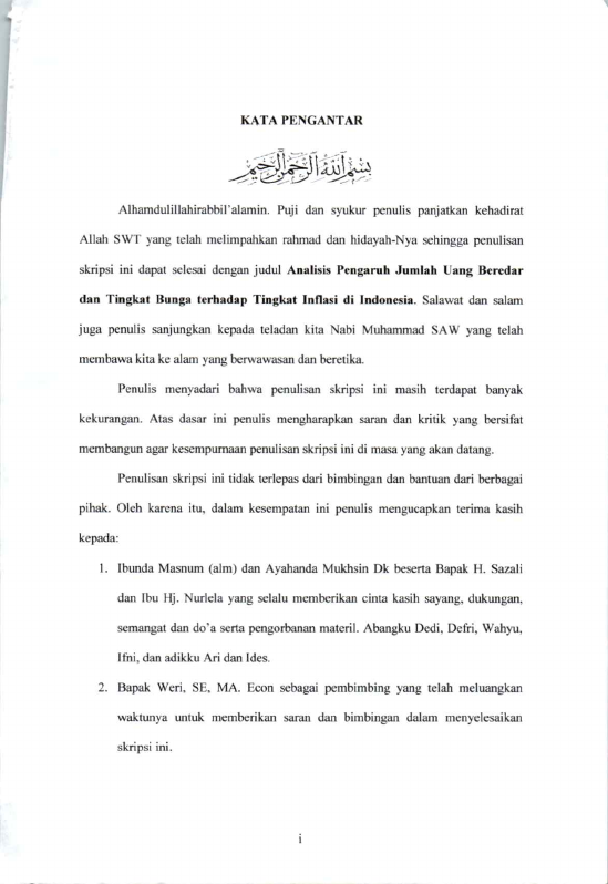 Nova Fitri, ANALISIS PENGARUH JUMLAH UANG BEREDAR DAN TINGKAT BUNGA TERHADAP TINGKAT INFLASI DI INDONESIA. Banda Aceh Universitas Syiah Kuala,2020