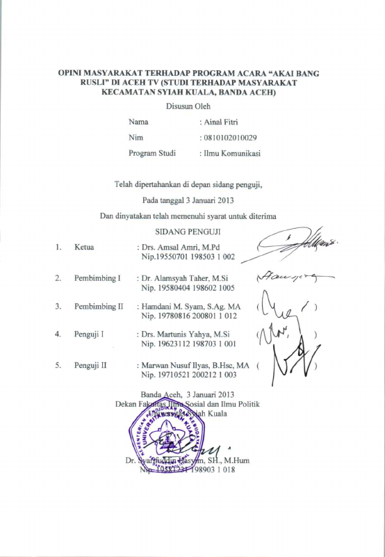 Ainal Fitri, OPINI MASYARAKAT TERHADAP PROGRAM ACARA "AKAI BANG RUSLT DI ACEH TV (STUDI TERHADAP MASYARAKAT KECAMATAN SYIAH KUALA, BANDA ACEH). Banda Aceh Universitas Syiah Kuala,2020