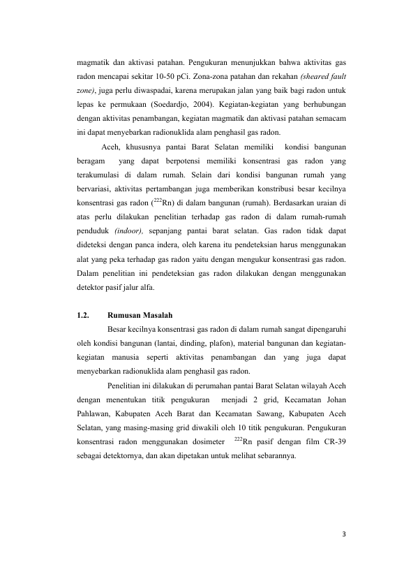 Baca Juga : IDENTIFIKASI KANDUNGAN GAS RADON DALAM TANAH DI KAWASAN PADAT PENDUDUK PERUMAHAN RINDAM IM MATA IE, ACEH BESAR (Bika Kurniadi, 2017)