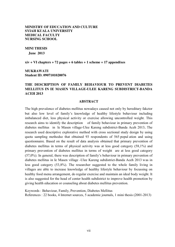 Baca Juga : GAMBARAN PERILAKU KELUARGA DALAM UPAYA PENCEGAHAN PENYAKIT DIABETES MELLITUS DI DESA IE MASEN KECAMATAN ULEE KARENG BANDA ACEH TAHUN 2013 (Mukrawati, 2023)