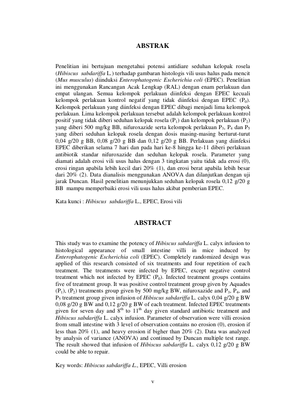Baca Juga : POTENSI SEDUHAN KELOPAK BUNGA ROSELA (HIBISCUS SABDARIFFA L.) SEBAGAI ANTIDIARE AKIBAT PAPARAN ENTEROPHATOGENIC ESCHERICHIA COLI (EPEC) PADA MENCIT (MUS MUSCULUS) (Yuni Argawati, 2014)