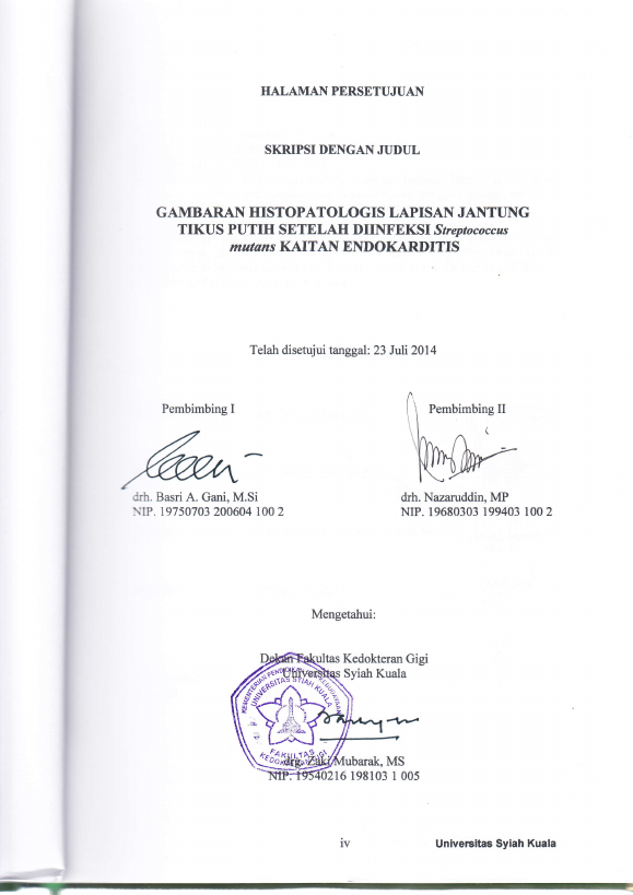Baca Juga : PROFIL HISTOPATOLOGIS ENDOKARDIUM DAN KATUP JANTUNG TIKUS PUTIH SETELAH DIINFEKSI RNSTREPTOCOCCUS MUTANS (Dinatul Khairani, 2014)