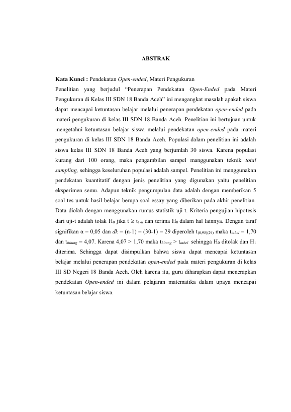 Baca Juga : PERBANDINGAN HASIL BELAJAR FISIKA MENGGUNAKAN PENDEKATAN OPEN-ENDED PROBLEM DENGAN PEMBELAJARAN LANGSUNG DI SMAN 1 BIREUEN (dahlia dara phonna, 2014)