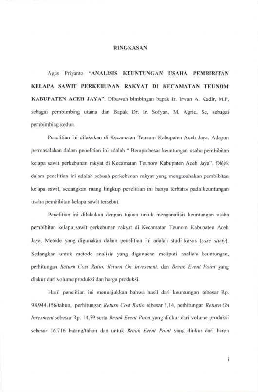 Baca Juga : ANALISIS KEUNTUNGAN USAHA PEMBIBITAN KELAPA SAWIT CV. MAKMUR TANI DI DESA SOAK PUNTONG KECAMATAN KUALA PESISIR KABUPATEN NAGAN RAYA (Putri Rizkiyah, 2020)