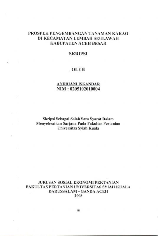 Baca Juga : PROSPEK PENGEMBANGAN TANAMAN KAKAO DIKECAMATAN LEMBAH SEULAWAH KABUPATEN ACEH BESAR (ANDRIANI ISKANDAR, 2020)