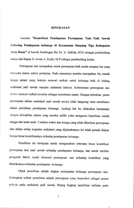 Baca Juga : KONTRJBUSI PENDAPATAN PEREMPUAN BURUH TANI PISANG TERHADAP PENDAPATAN KELUARGA DIKECAMATAN PADANG TIJI KAB UPATEN PIDIE (Nadya Aiza Hikmah, 2020)