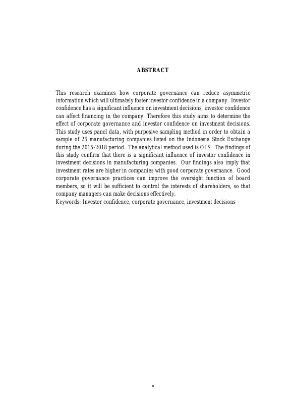 MAYA ZATIL AQMAR, PENGARUH INVESTOR CONFIDENCE YANG DIMODERASI OLEH TATA KELOLA PERUSAHAAN TERHADAP KEPUTUSAN INVESTASI PADA PERUSAHAAN MANUFAKTUR YANG TERCATAT DI BURSA EFEK INDONESIA. Banda Aceh Universitas Syiah Kuala,2020