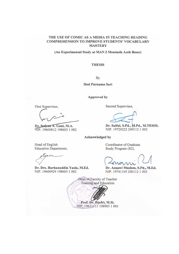 Baca Juga : THE APPLICATION OF COMIC STRIPS IN TEACHING VOCABULARY (AN EXPERIMENTAL RESEARCH AT SECOND GRADE STUDENTS OF SMPN 8 BANDA ACEH) (Lisa Darsalina, 2016)