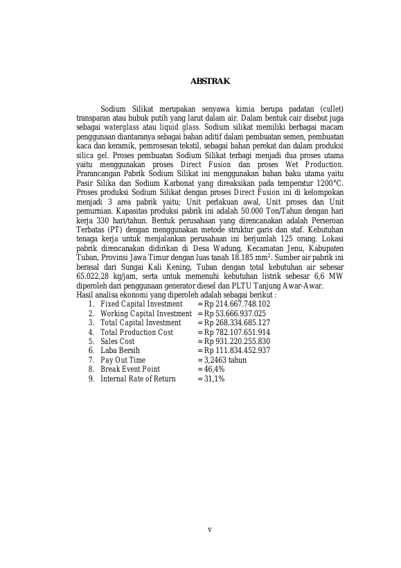 Baca Juga : PRARANCANGAN PABRIK SODIUM SILIKAT DARI SODIUM KARBONAT DAN PASIR SILIKA MENGGUNAKAN PROSES DIRECT FUSION DENGAN KAPASITAS PRODUKSI 55.000 TON/TAHUN (nanda rahmat sentausa, 2022)