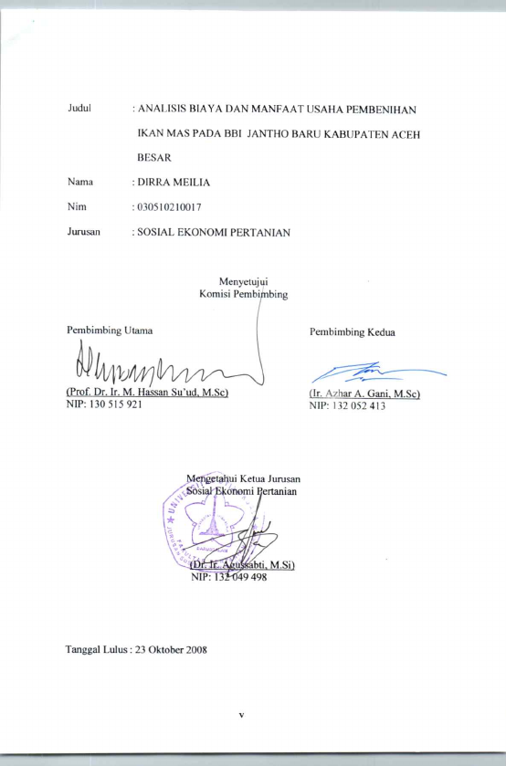 Baca Juga : ANALISIS PERBANDINGAN KEUNTUNGAN PEMBIBITAN IKAN NILA DAN IKAN MAS PADA USAHA PEMBENIHAN IKAN RAKYAT DI BATEE ILIEK KECAMATAN SAMALANGA KABUPATEN BIREUEN (FIRDA SAHTIANA, 2013)