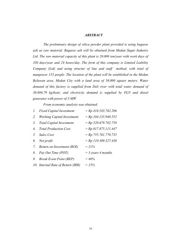 Baca Juga : PRARANCANGAN PABRIK SILICA POWDERDARI ABU AMPAS TEBU DENGAN KAPASITAS BAHAN BAKU 20.000 TON/TAHUN (Intan Harmanita, 2020)