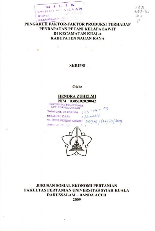 Baca Juga : ANALISIS FAKTOR-FAKTOR YANG MEMPENGARUHI KONVERSI LAHAN TANAMAN KAKAO MENJADI KELAPA SAWIT DI KECAMATAN KUALA KABUPATEN NAGAN RAYA (MARZUKI YUSRIADI, 2015)