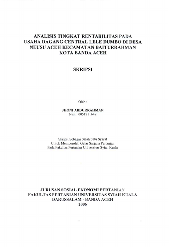 Baca Juga : ANALISIS FINANSIAL USAHATANI IKAN LELE DUMBO (STUDI KASUS PADA PERUSAHAAN CENTRAL LELE DI NEUSU ACER KECAMATAN BAITURRAHMAN KOTA BANDA ACEH) (Cut Rizka Fadhilla, 2021)