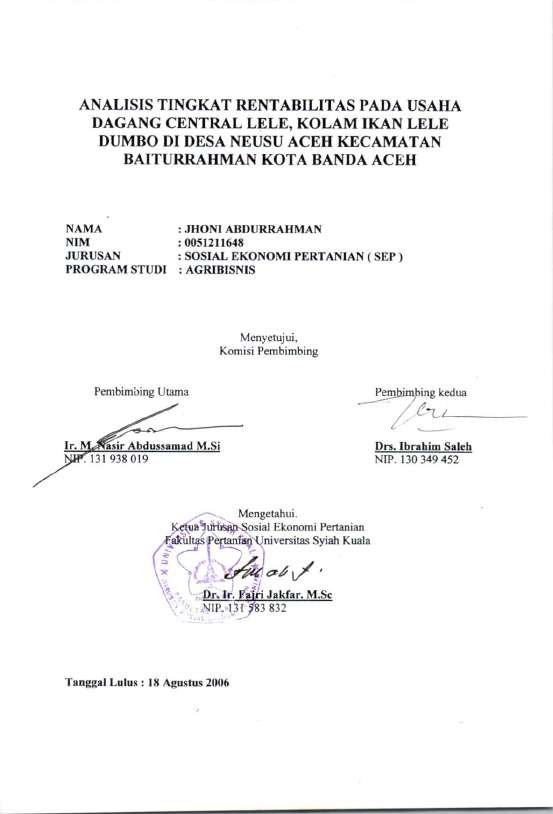 Baca Juga : ANALISIS FINANSIAL USAHATANI IKAN LELE DUMBO (STUDI KASUS PADA PERUSAHAAN CENTRAL LELE DI NEUSU ACER KECAMATAN BAITURRAHMAN KOTA BANDA ACEH) (Cut Rizka Fadhilla, 2021)