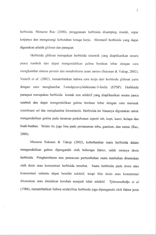 ROSLINA, APLIKASI HERBISIDA GLIFOSAT DAN PARAQUAT PADA BERBAGAI D0S1S SERTA PENGARUHNYA TERHADAP PERTUMBUHAN BIDURI (CALOTROPIS GIGANTEA R. BR). Banda Aceh Universitas Syiah Kuala,2021