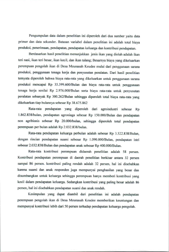 Baca Juga : MOTIVASI PEREMPUAN PENGOLAH IKAN TERI DALAM MENINGKATKAN PENDAPATAN KELUARGA DI DESA MEUNASAH KEUDE KECAMATAN MESJID RAYA KABUPATEN ACEH BESAR (Devi Maulina, 2020)