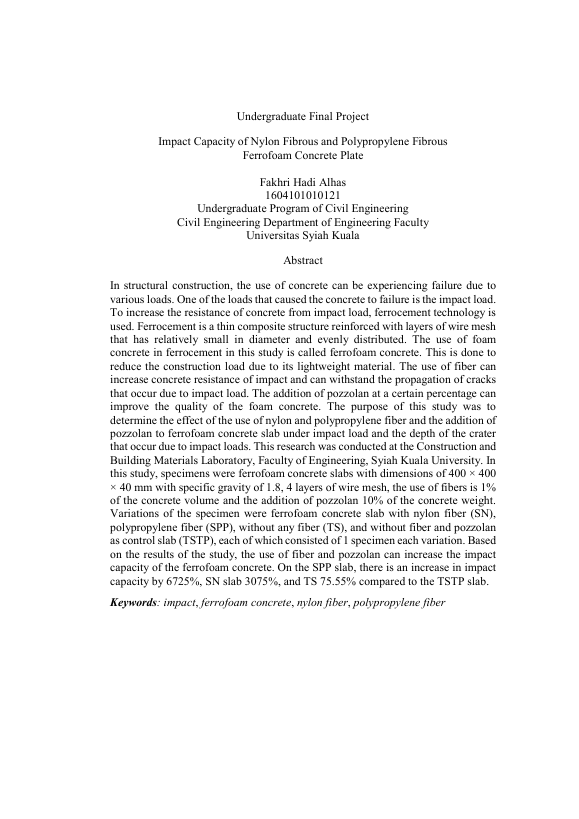Baca Juga : KAPASITAS IMPACT PELAT FERROFOAM CONCRETE BERSERAT NILON DAN BERSERAT POLYPROPYLENE (FAKHRI HADI ALHAS, 2021)