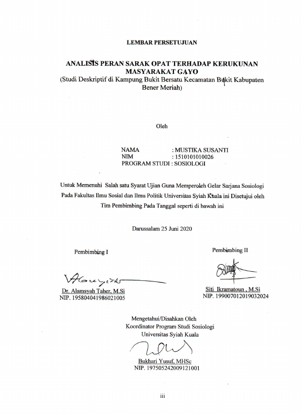 Baca Juga : EKSISTENSI SARAKOPAT DALAM MENYELESAIKAN PELANGGARAN ADAT PERKAWINANRNDI KECAMATAN BUKIT KABUPATEN BENER MERIAH (2004-2008) (Haris, MS, 2021)