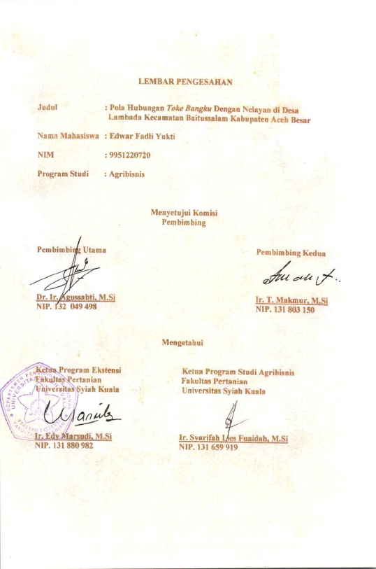Baca Juga : POLA KEMITRAAN TOKE BANGKU DENGAN NELAYAN DI DESA LAMPULO KECAMATAN KUTA ALAM KOTA BANDA ACEH (Riki Kurniawan, 2020)