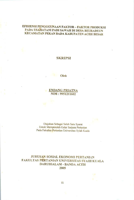 Baca Juga : EFISIENSI PENGGUNAAN FAKTOR PRODUKSI MODAL DAN TENAGA KERJA PADA USAHATANI PADI SAWAH DI KECAMATAN INGIN JAYA KABUPATEN ACEH BESAR (Cut Al Riskika Putri, 2020)