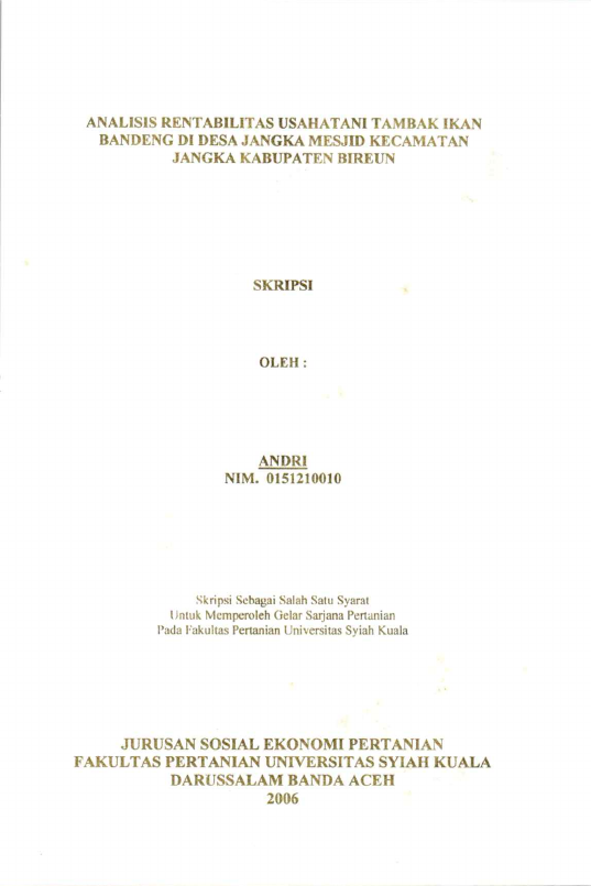 Baca Juga : ANALISIS PERBANDINGAN PENDAPATAN USAHA TAMBAK IKAN BANDENG (CHANOS -- CHANOS FORSKAL) POLA TRADISIONAL DAN POLA SEMI INTENSIF DI KECAMATAN JANGKA KABUPATEN BIREUEN (Emilda Thahir, 2020)