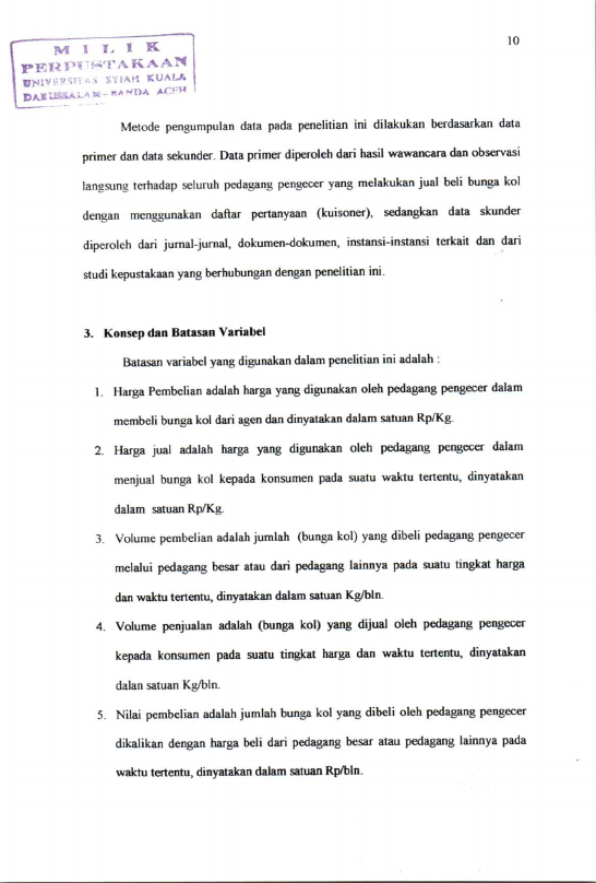 Eva Fitria, ANALISIS KEUNTUNGAN PEDAGANG PENGECER BUNGA KOL DI KOTA BANDA ACEH. Banda Aceh Universitas Syiah Kuala,2021