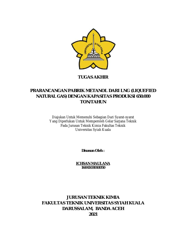 Baca Juga : PRARANCANGAN PABRIK METANOL DARI LNG (LIQUEFIED NATURAL GAS) DENGAN KAPASITAS PRODUKSI 650.000 TON/TAHUN (ICHSAN MAULANA, 2021)